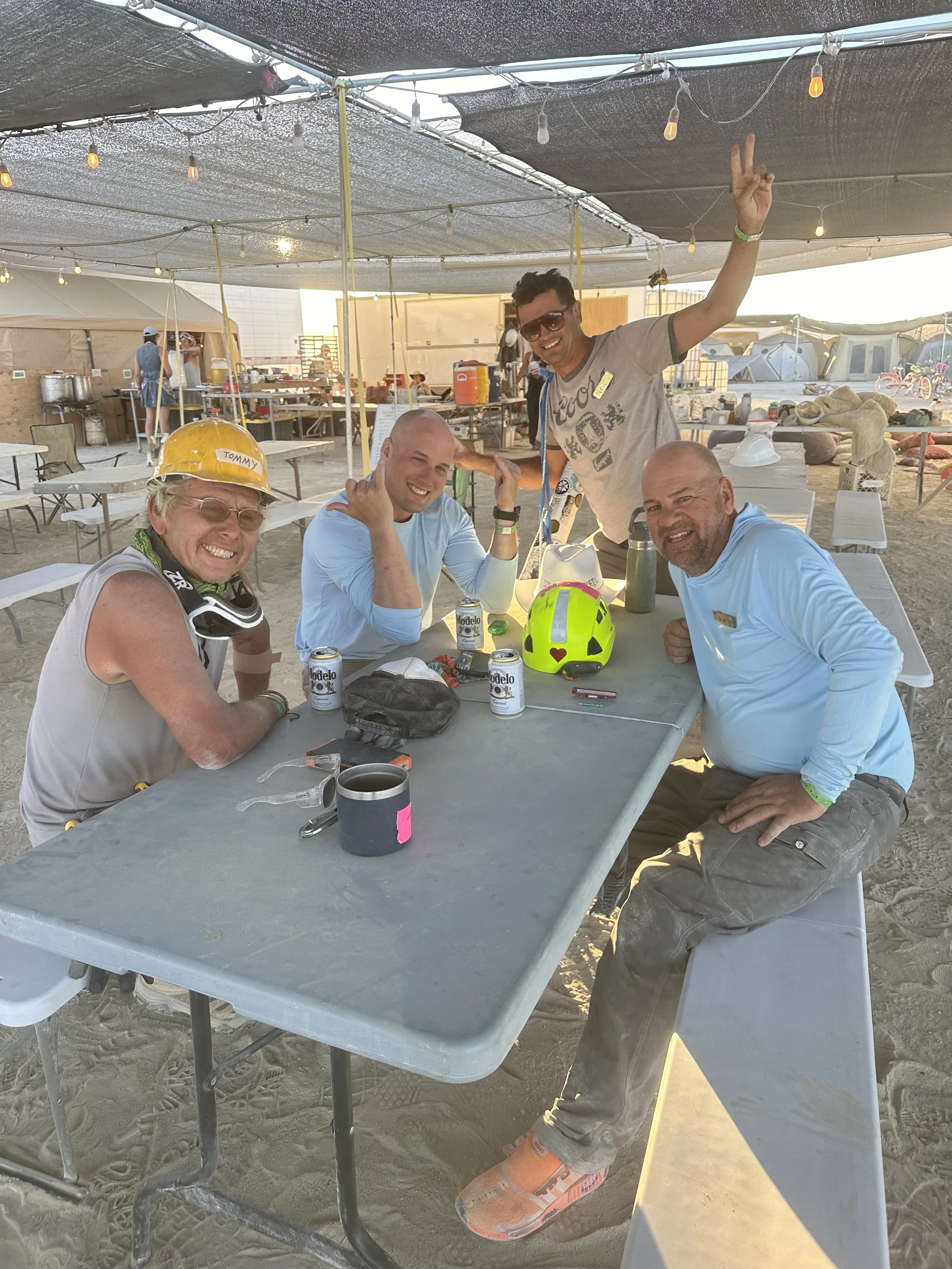 We maintain a full tool library equipped for pre-build of the temple and on playa build! This includes: battery hand tools, levels, rigging equipment, safety equipment and pneumatics!